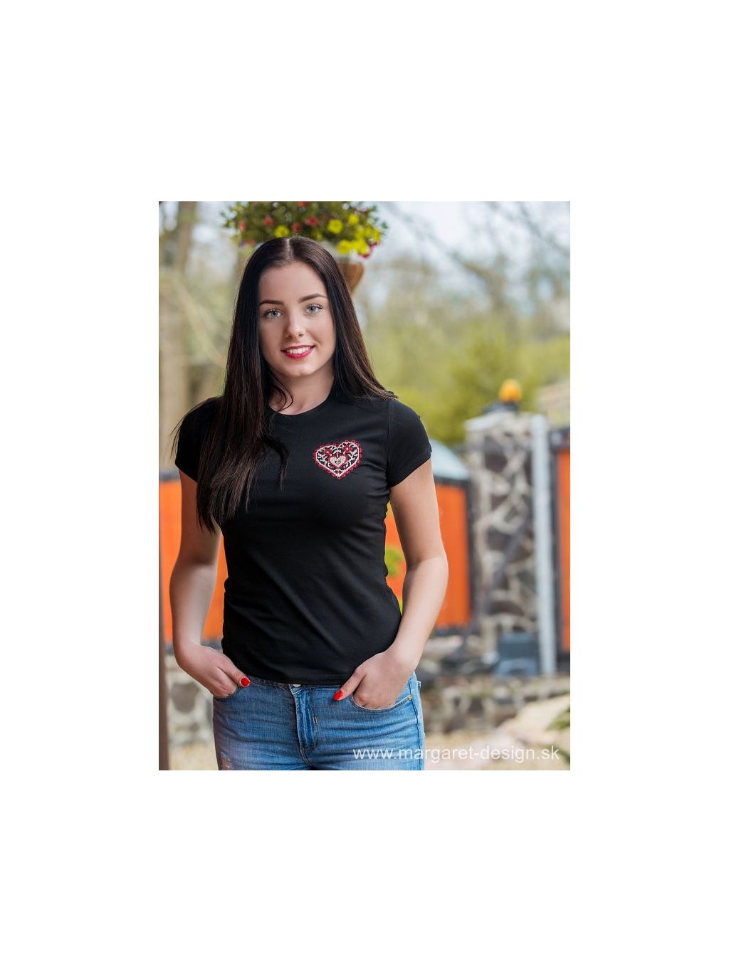 Dámske vyšívané tričko -Čierne- Srdiečko