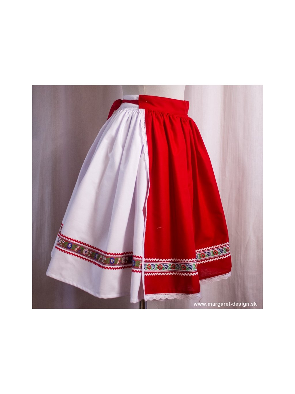 Ak by ste si želali vyskladať podobný komplet podľa vlastnej predstavy – napríklad zvoliť inú vzorovanú bavlnu, odlišný spôsob zdobenia na sukni a zástere alebo inú farebnosť zásterky – môžete nás kontaktovať prostredníctvom e-mailu. Radi vám pripravíme individuálny návrh vychádzajúci z tradičného remesla a regionálnych špecifík.