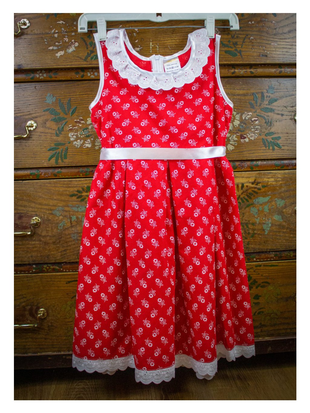 Dievčenské červené šaty vzor-margarétka