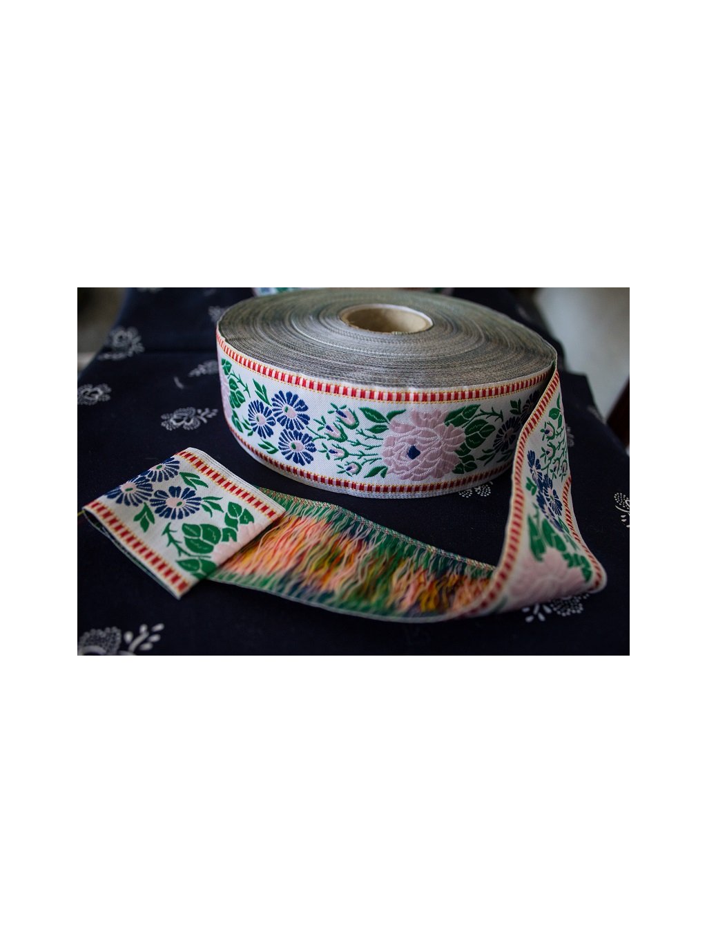 Krojová vyšívaná stuha biela - 4,5 cm