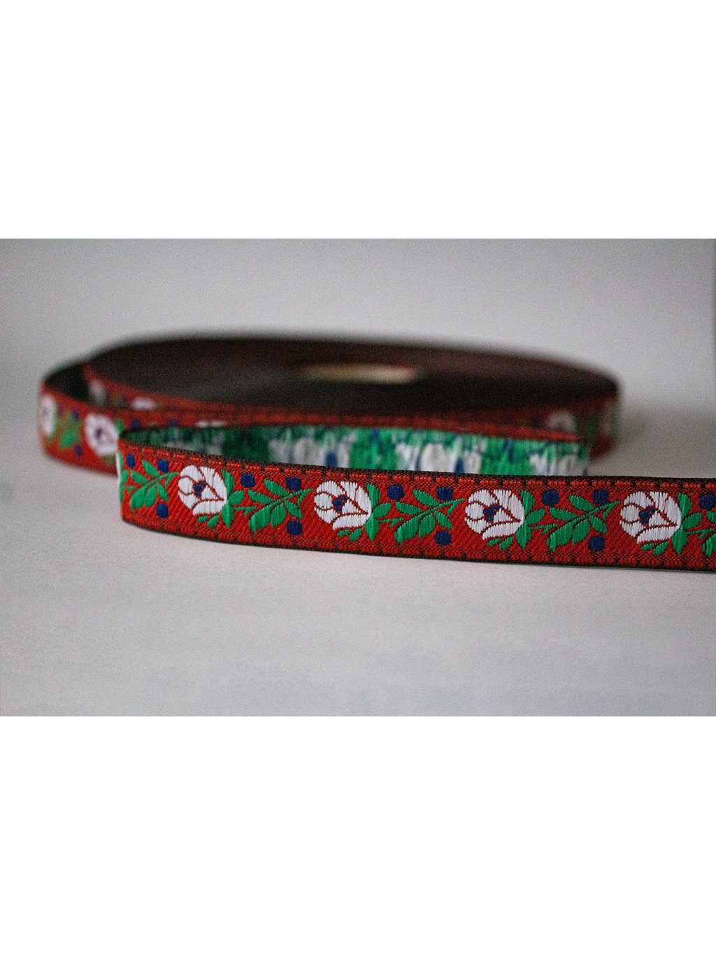 Krojová vyšívaná stuha červená - 1,8 cm