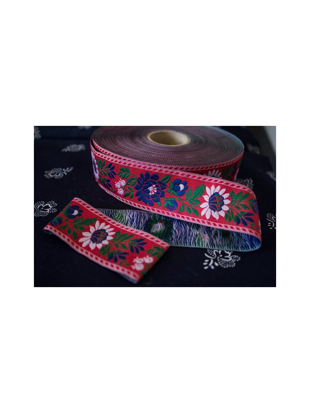 Krojová vyšívaná stuha červená - 3,5 cm
