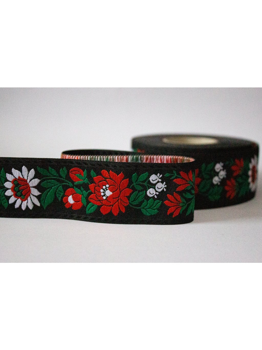 Krojová vyšívaná stuha čierna - 3,5 cm