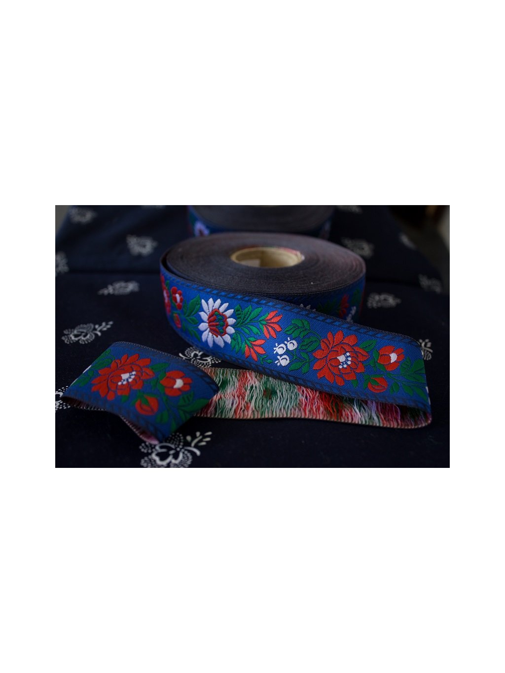 Krojová vyšívaná stuha modrá - 3,5 cm