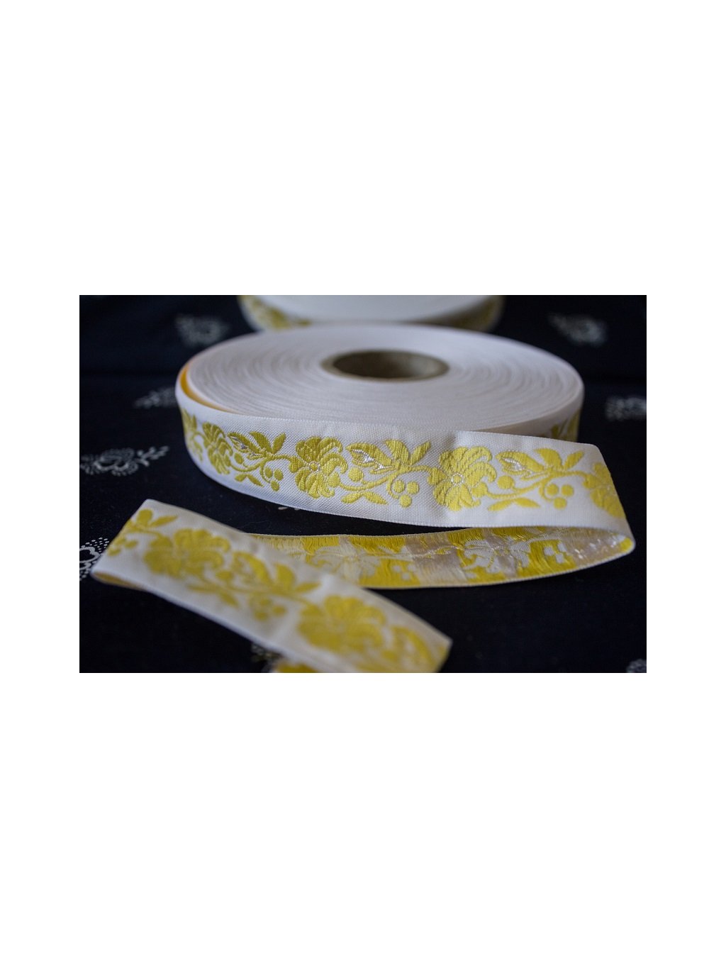 Krojová vyšívaná stuha žltá - 2,5 cm