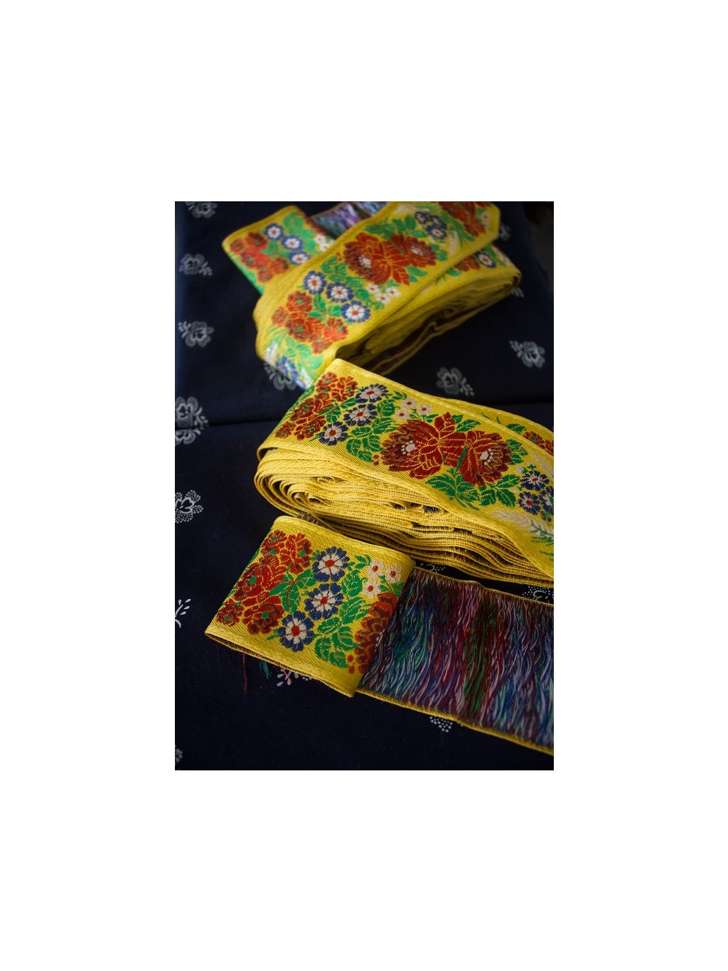 Krojová vyšívaná stuha žltá - 7 cm
