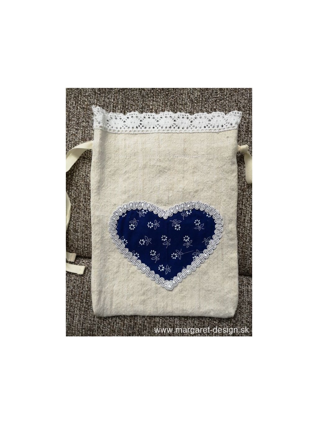 Ľanové multifunkčné vrecúško - modré srdiečko