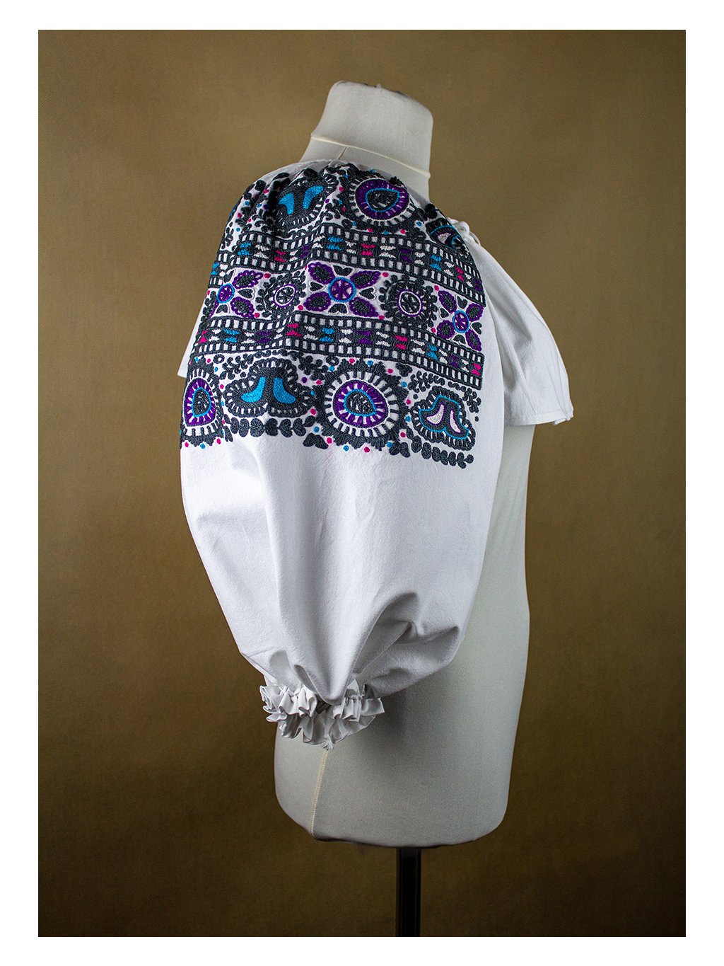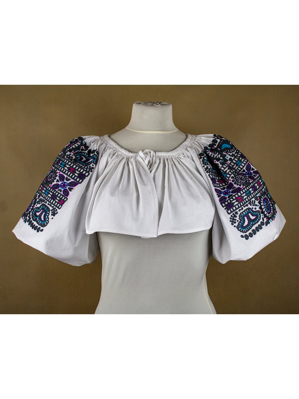 Ručne vyšívané oplecko – Detva - sivé