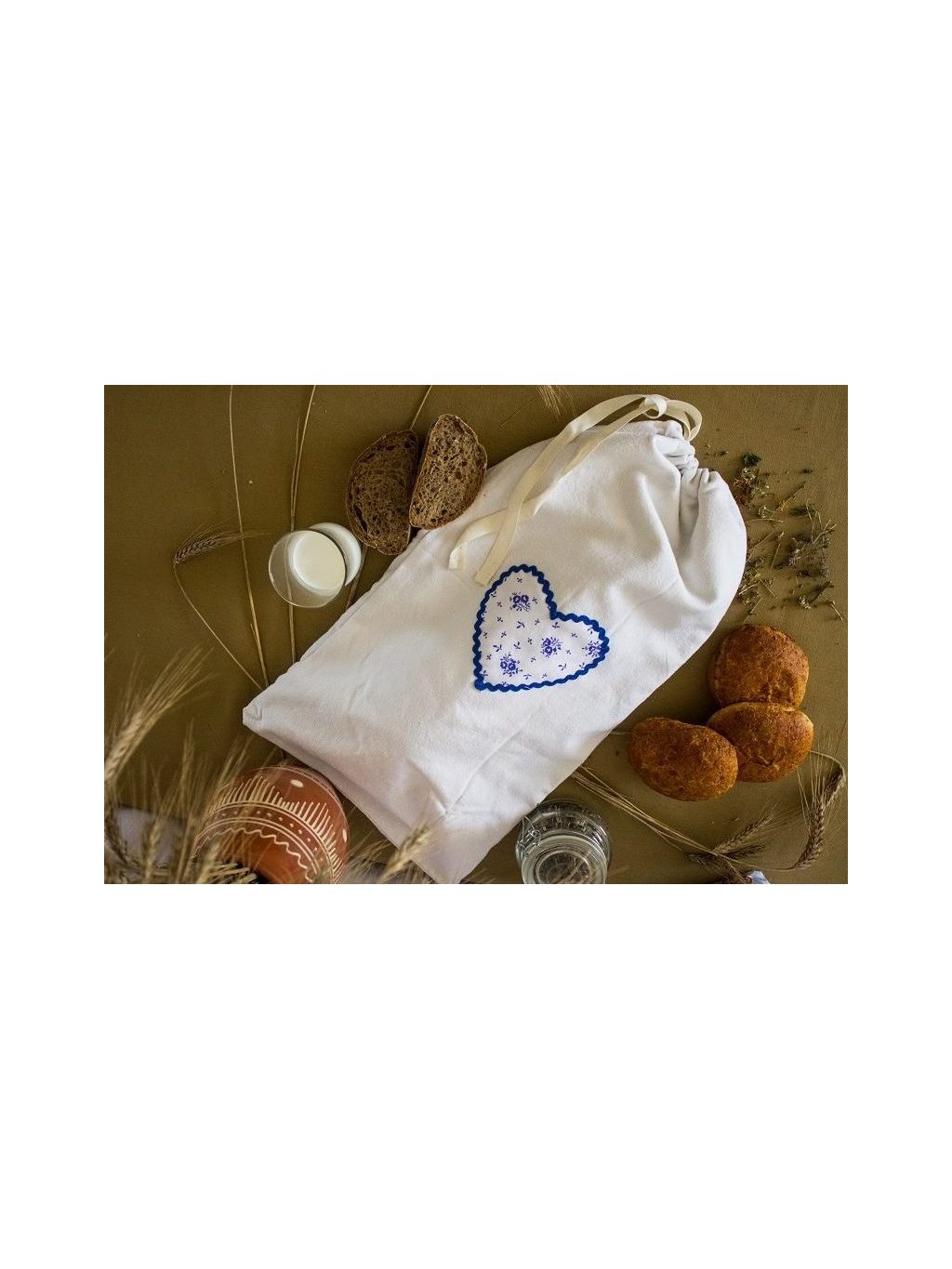Vrecko na chlebík (dvojvrstvové) - Biele srdiečko