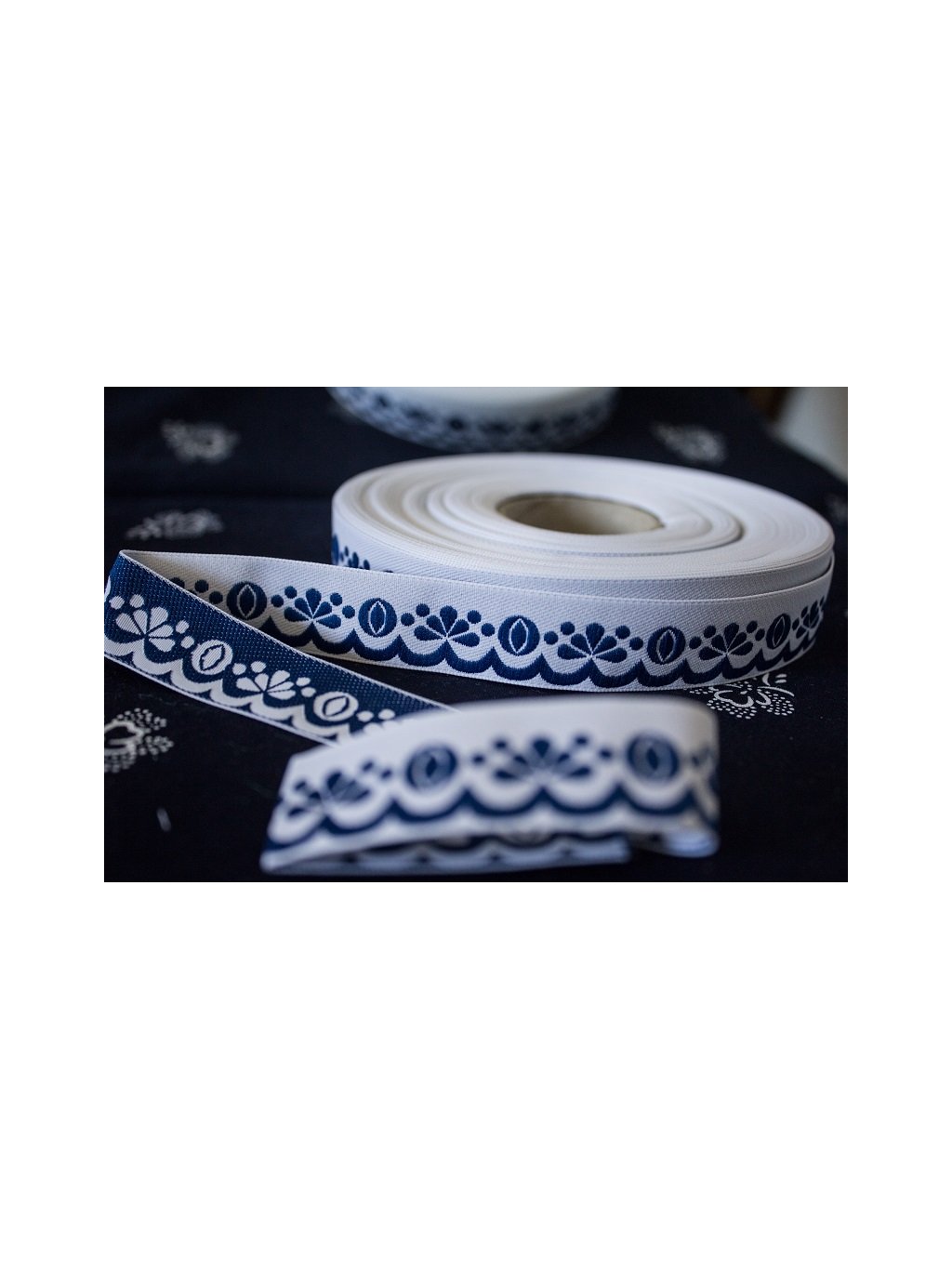 Vyšívaná krojová stuha tmavomodrá - 2 cm