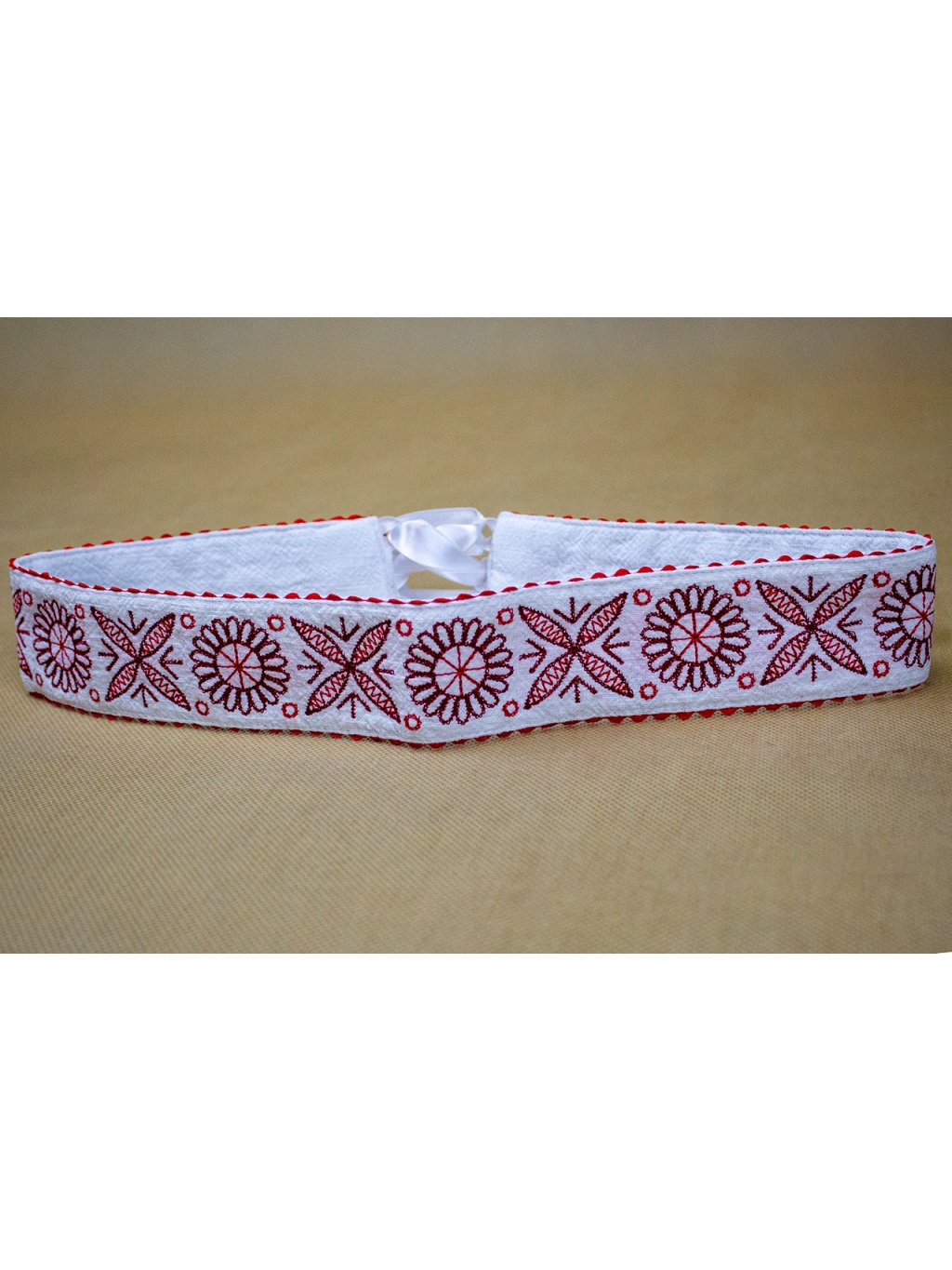 Vyšívaný ľanový opasok – Biely - vzor Detva